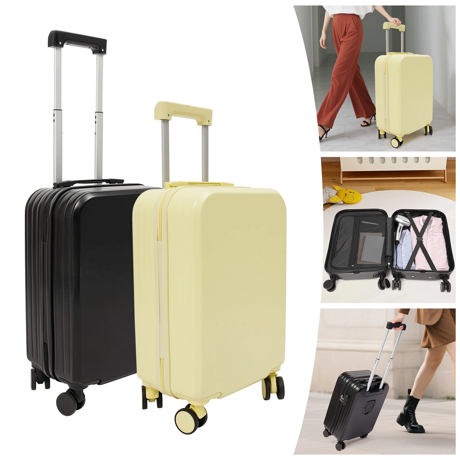 20in Light Yellow ABS Travel Luggage Suitcase with 998 Cup Holder,Rectangular Load 40kg 4 * Shock-absorbing Wheels