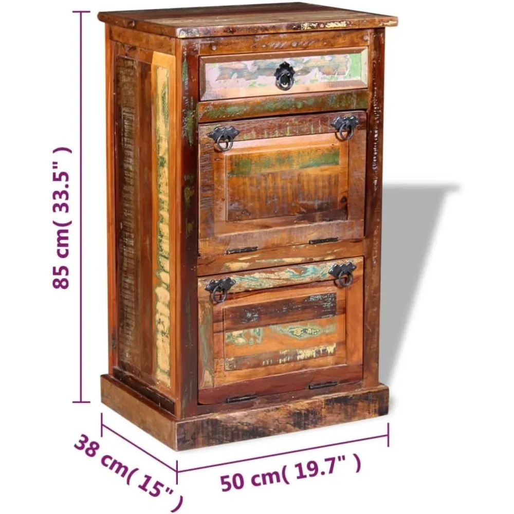 - Thanks to the doors, the shoe organizer protects your shoes from dust and keeps them out of sight. The top drawer is ideal for keeping frequently-used items within reach. Made of reclaimed wood, this shoe cabinet is solid, durable and beautiful, and has the characteristics of different woods like teak, mango wood, acacia, recycled wood, hard wood, etc. This makes each piece of the furniture unique, and slightly different from the next.