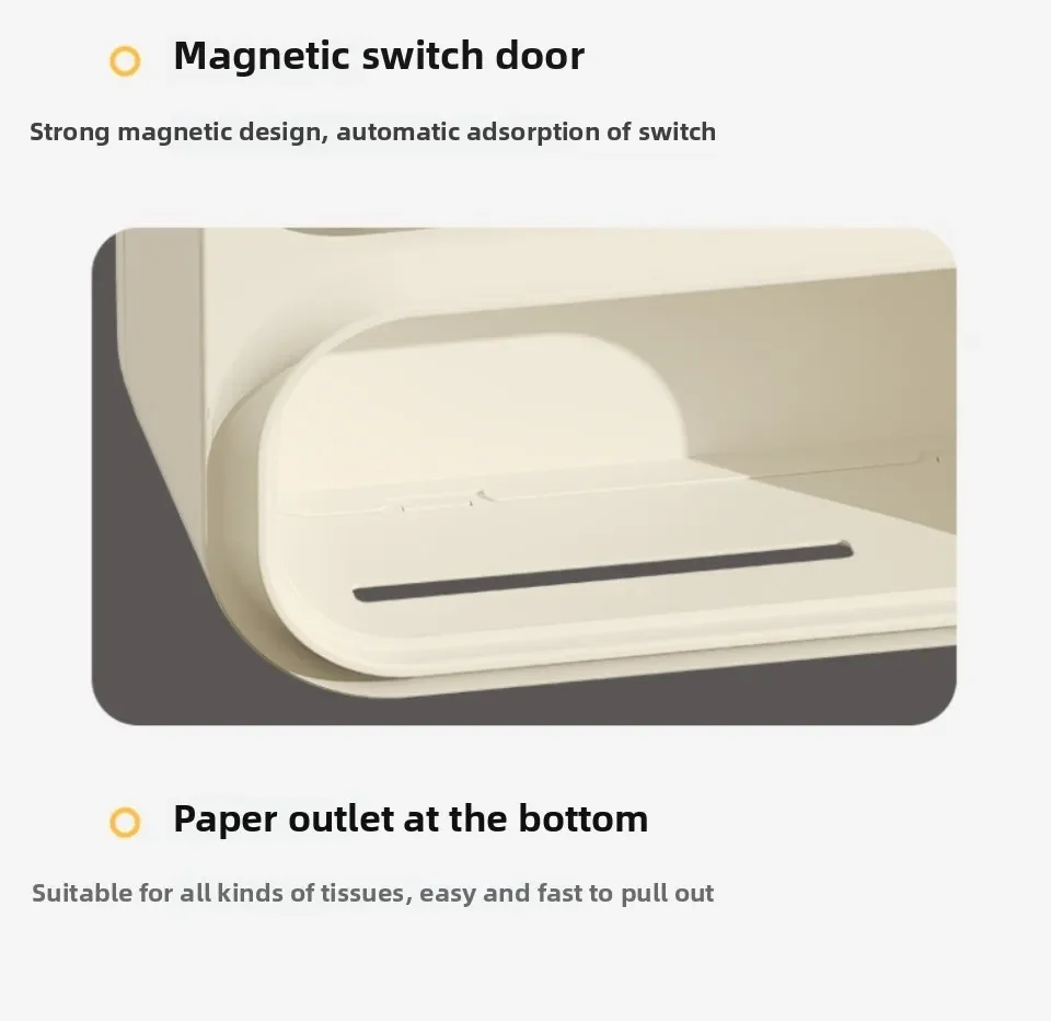 Wall-mounted Bathroom Storage Rack Punch Free Dust-proof Cosmetics Storage Box with Paper Drawing Hole 3 Color Light and Mirror
