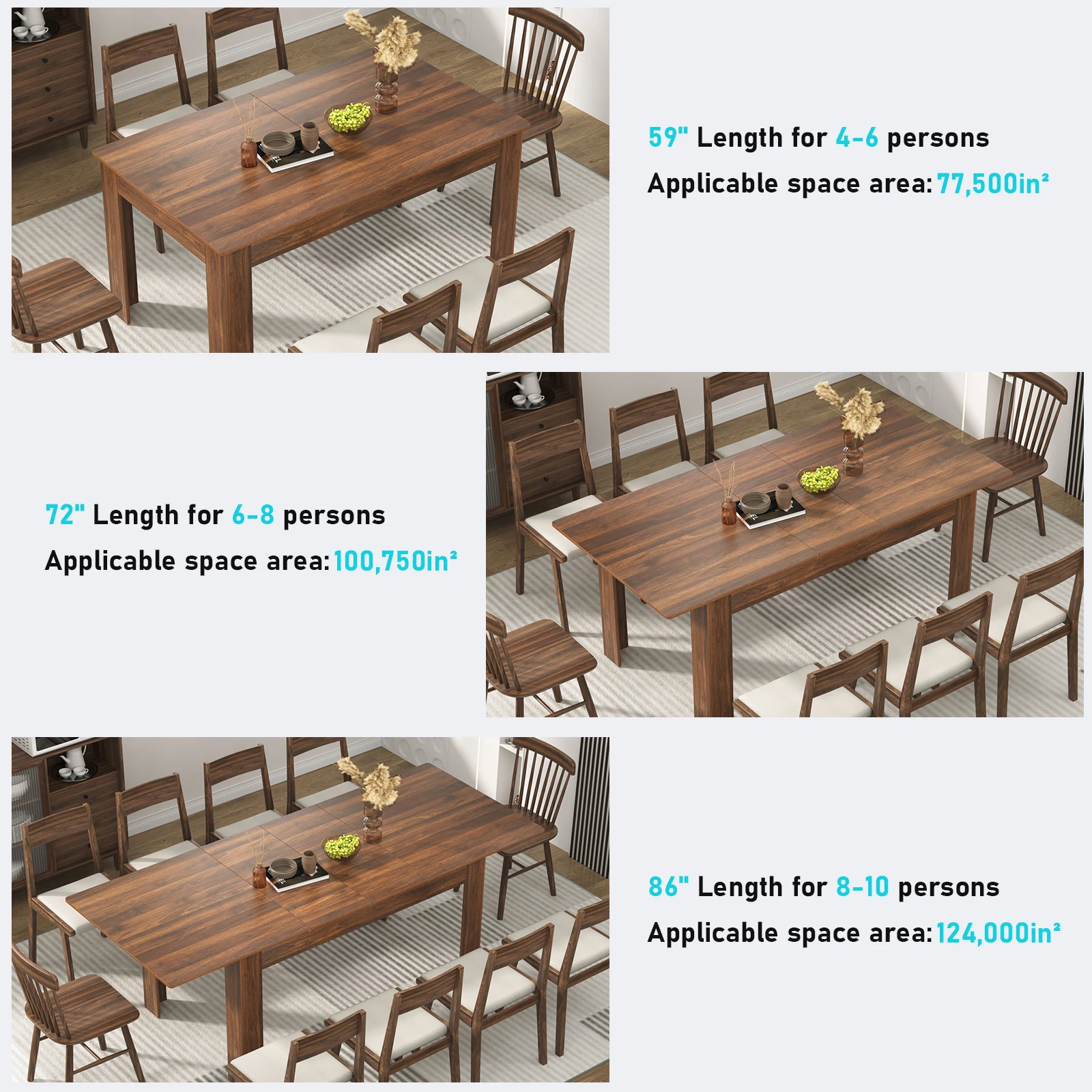 Extendable Dining Table for 6-10 Person, Wooden Dining Room Table, Modern Extendable Table for Gatherings, Meeting for Kitchens