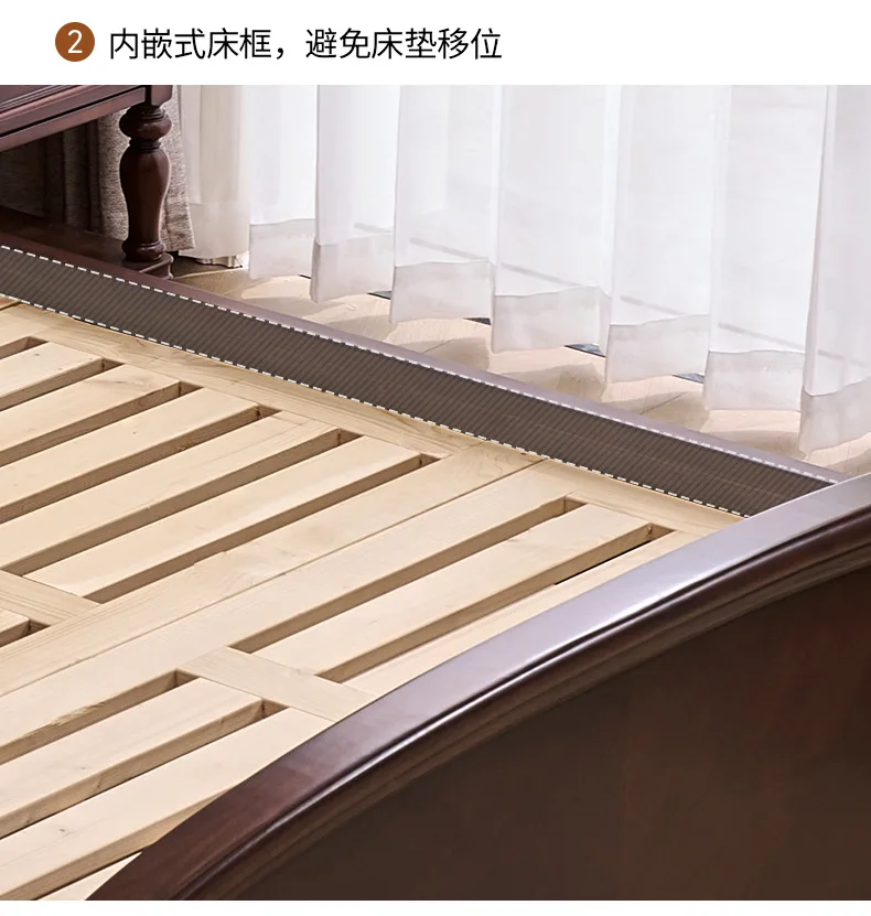 (FAS grade peach blossom core) high-end retro solid wood bed French Anna bed medium antique bed 1.8 double solid wood bed