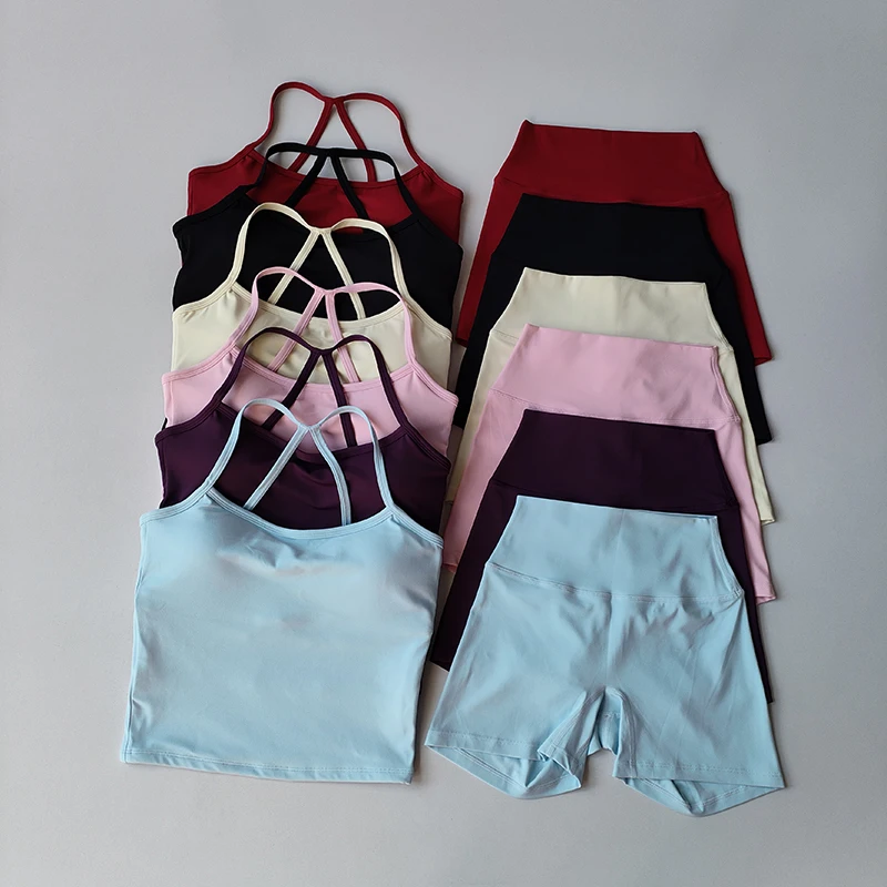Fitness Gym Set Women 2 Piece Sets Halter Neck Tank Tops High Waist Scrunch Seamless Shorts Sport Suit Sportswear Workout Set