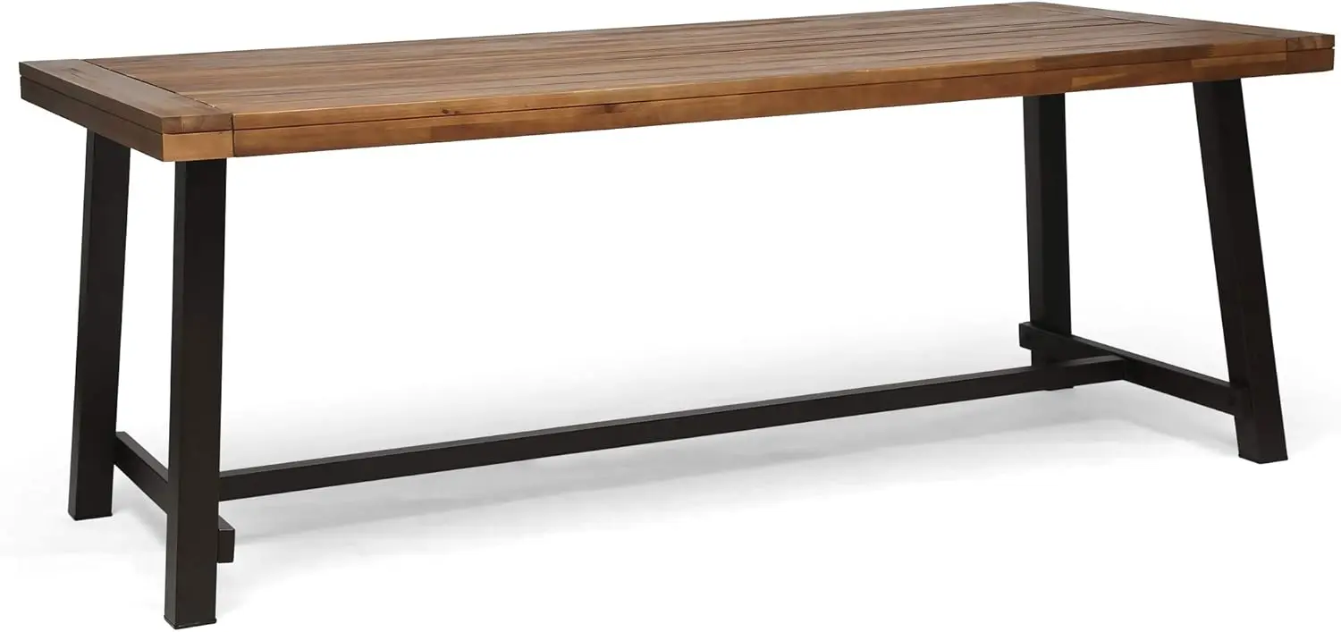 Great Deal Furniture Beau Outdoor Eight Seater Wooden Dining Table, Teak and Rustic Metal Finish