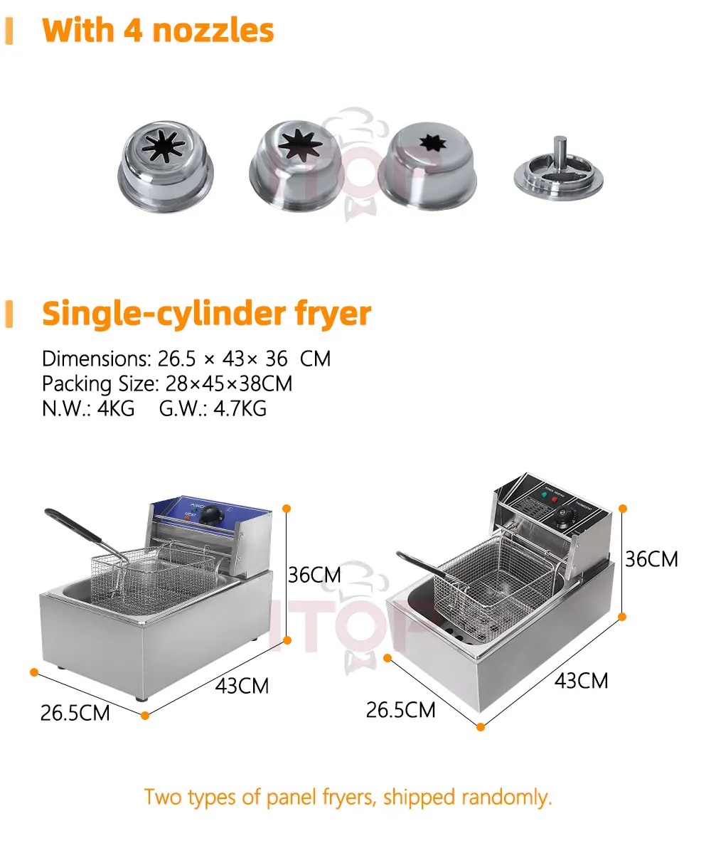 ITOP HOUUROE 5L Spanish Churros Maker Kinnerberry/Jizzy Fruit/Latin Fruit Machine with 6L Electric Fryer Manual Churros Filler