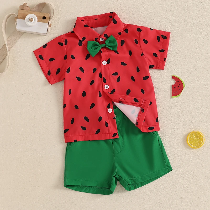 Toddler Baby Boy Summer Outfits Watermelon Pattern Button Down Turn Down Collar Short Sleeve Shirt with Shorts 2 Pcs Set