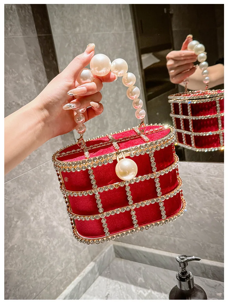 Metallic Evening Bag Pearl Hollow Out Womens Bags Luxury Design Rhinestone Diamond Dinner Bags For Party Wedding Handbags