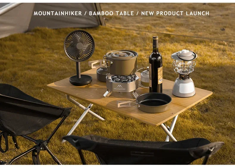MOUNTAINHIKER Outdoor Camping Bamboo Folding Table Portable Fast Storage Folding Desk Outdoor Dining Table Picnic BBQ Table