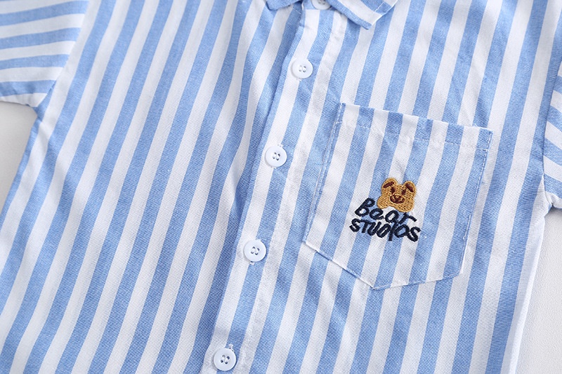 New Summer Baby Boy Clothes Set Toddler Boys Striped Cartoon 2-Piece Outfit with Cargo Shorts Casual Infant Children's Clothing